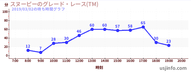 • スヌーピーのグレード・レース(TM)$B$N(B2019年03月02日の待ち時間