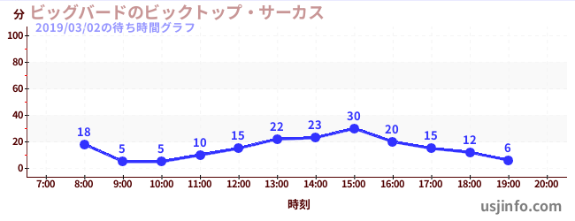 • ビッグバードのビックトップ・サーカス$B$N(B2019年03月02日の待ち時間