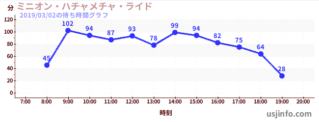 • ミニオン・ハチャメチャ・ライド$B$N(B2019年03月02日の待ち時間