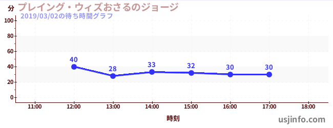 • プレイング・ウィズおさるのジョージ$B$N(B2019年03月02日の待ち時間