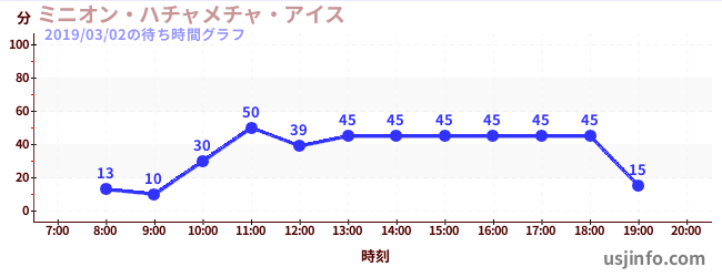 • ミニオン・ハチャメチャ・アイス$B$N(B2019年03月02日の待ち時間