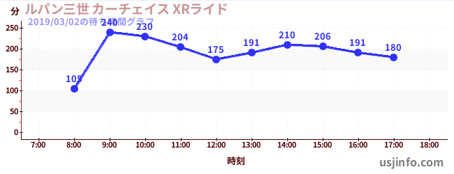 • ルパン三世 カーチェイス XRライド$B$N(B2019年03月02日の待ち時間