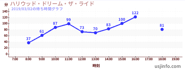 • ハリウッド・ドリーム・ザ・ライド$B$N(B2019年03月02日の待ち時間