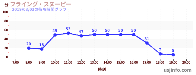 • フライング・スヌーピー$B$N(B2019年03月03日の待ち時間
