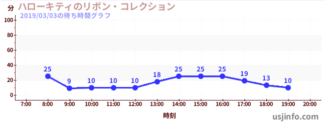 • ハローキティのリボン・コレクション$B$N(B2019年03月03日の待ち時間