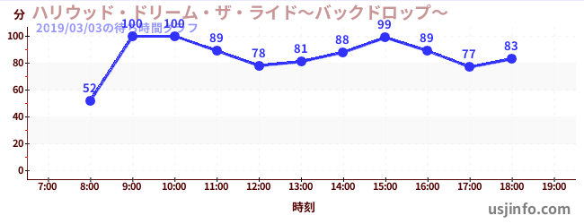 • ハリウッド・ドリーム・ザ・ライド〜バックドロップ〜$B$N(B2019年03月03日の待ち時間