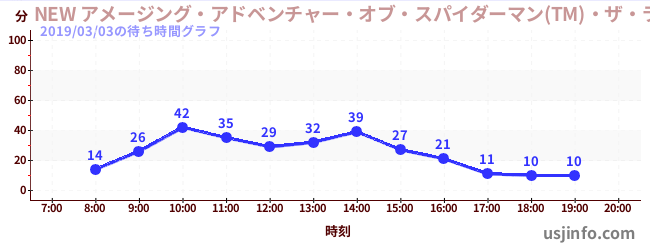 • NEW アメージング・アドベンチャー・オブ・スパイダーマン(TM)・ザ・ライド 4K3D$B$N(B2019年03月03日の待ち時間