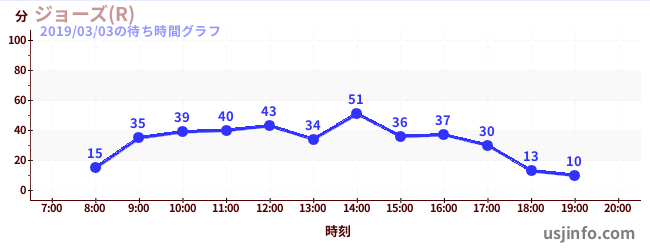 • ジョーズ(R)$B$N(B2019年03月03日の待ち時間