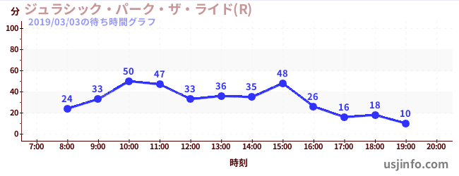 • ジュラシック・パーク・ザ・ライド(R)$B$N(B2019年03月03日の待ち時間
