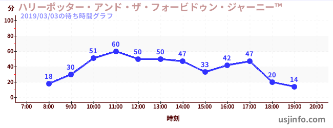 • ハリーポッター・アンド・ザ・フォービドゥン・ジャーニー™$B$N(B2019年03月03日の待ち時間