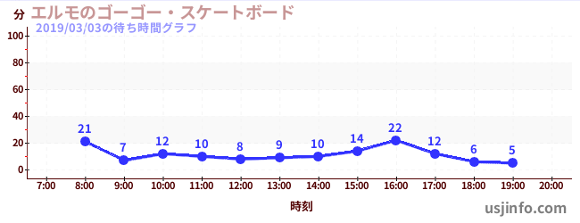 • エルモのゴーゴー・スケートボード$B$N(B2019年03月03日の待ち時間
