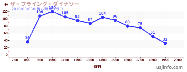 • ザ・フライング・ダイナソー$B$N(B2019年03月03日の待ち時間