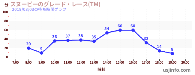 • スヌーピーのグレード・レース(TM)$B$N(B2019年03月03日の待ち時間