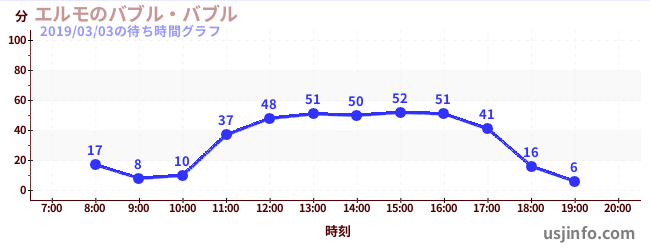 • エルモのバブル・バブル$B$N(B2019年03月03日の待ち時間