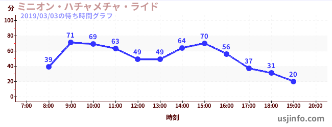 • ミニオン・ハチャメチャ・ライド$B$N(B2019年03月03日の待ち時間