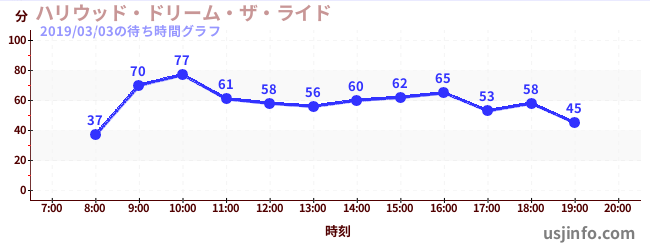 • ハリウッド・ドリーム・ザ・ライド$B$N(B2019年03月03日の待ち時間
