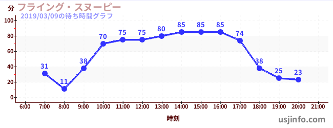 • フライング・スヌーピー$B$N(B2019年03月09日の待ち時間