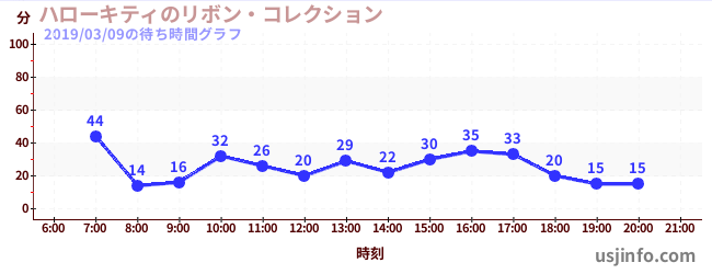• ハローキティのリボン・コレクション$B$N(B2019年03月09日の待ち時間