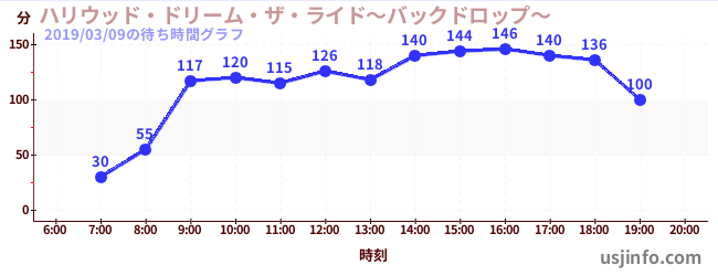 • ハリウッド・ドリーム・ザ・ライド〜バックドロップ〜$B$N(B2019年03月09日の待ち時間