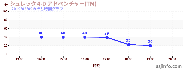 • シュレック 4-D アドベンチャー(TM)$B$N(B2019年03月09日の待ち時間