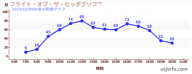 • フライト・オブ・ザ・ヒッポグリフ™$B$N(B2019年03月09日の待ち時間