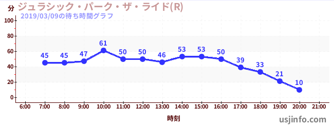 • ジュラシック・パーク・ザ・ライド(R)$B$N(B2019年03月09日の待ち時間