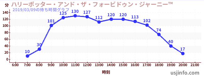 • ハリーポッター・アンド・ザ・フォービドゥン・ジャーニー™$B$N(B2019年03月09日の待ち時間