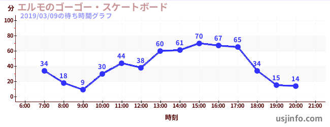 • エルモのゴーゴー・スケートボード$B$N(B2019年03月09日の待ち時間