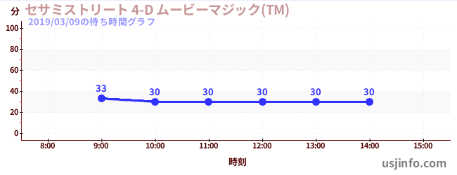 • セサミストリート 4-D ムービーマジック(TM)$B$N(B2019年03月09日の待ち時間