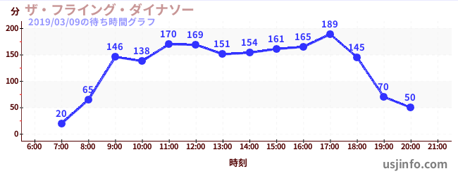 • ザ・フライング・ダイナソー$B$N(B2019年03月09日の待ち時間