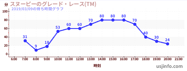 • スヌーピーのグレード・レース(TM)$B$N(B2019年03月09日の待ち時間