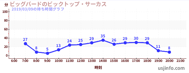 • ビッグバードのビックトップ・サーカス$B$N(B2019年03月09日の待ち時間