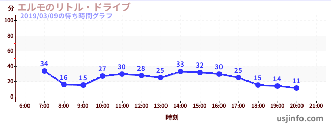 • エルモのリトル・ドライブ$B$N(B2019年03月09日の待ち時間