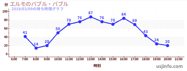 • エルモのバブル・バブル$B$N(B2019年03月09日の待ち時間