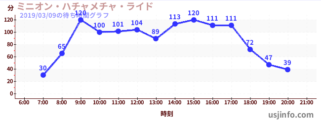 • ミニオン・ハチャメチャ・ライド$B$N(B2019年03月09日の待ち時間