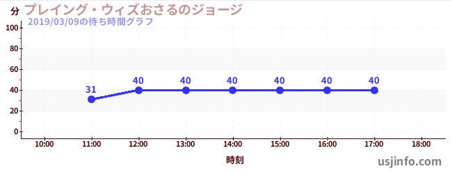 • プレイング・ウィズおさるのジョージ$B$N(B2019年03月09日の待ち時間