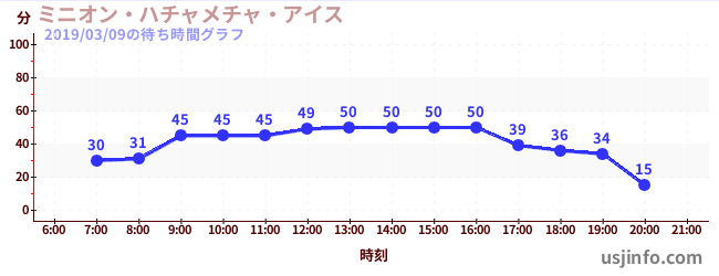 • ミニオン・ハチャメチャ・アイス$B$N(B2019年03月09日の待ち時間