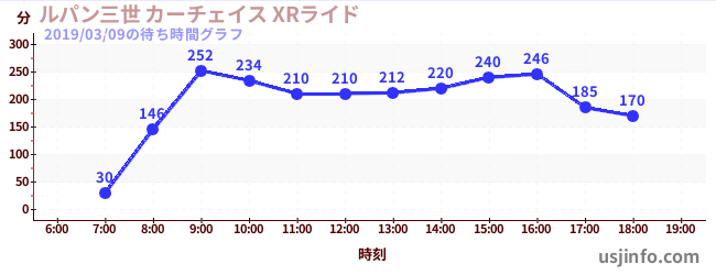 • ルパン三世 カーチェイス XRライド$B$N(B2019年03月09日の待ち時間