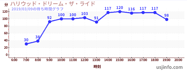 • ハリウッド・ドリーム・ザ・ライド$B$N(B2019年03月09日の待ち時間