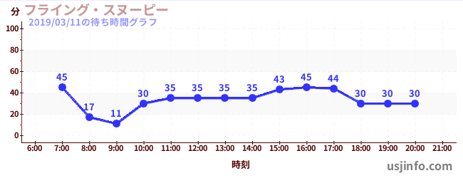 • フライング・スヌーピー$B$N(B2019年03月11日の待ち時間