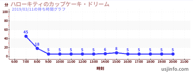 • ハローキティのカップケーキ・ドリーム$B$N(B2019年03月11日の待ち時間
