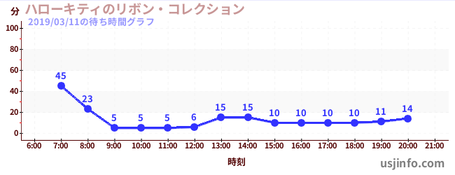 • ハローキティのリボン・コレクション$B$N(B2019年03月11日の待ち時間
