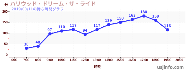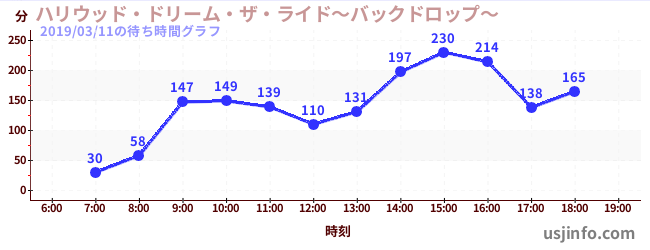 • ハリウッド・ドリーム・ザ・ライド$B$N(B2019年03月11日の待ち時間