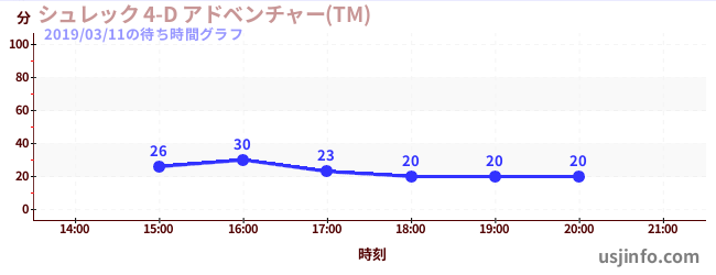 • シュレック 4-D アドベンチャー(TM)$B$N(B2019年03月11日の待ち時間