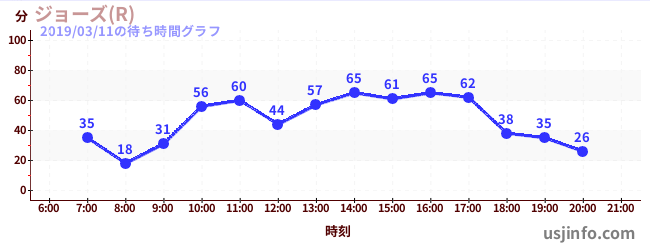 • ジョーズ(R)$B$N(B2019年03月11日の待ち時間