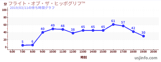• フライト・オブ・ザ・ヒッポグリフ™$B$N(B2019年03月11日の待ち時間