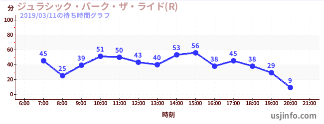 • ジュラシック・パーク・ザ・ライド(R)$B$N(B2019年03月11日の待ち時間