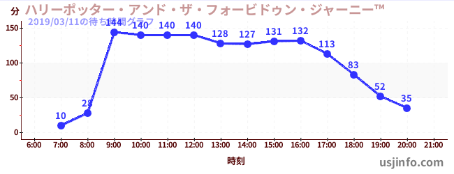 • ハリーポッター・アンド・ザ・フォービドゥン・ジャーニー™$B$N(B2019年03月11日の待ち時間