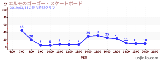 • エルモのゴーゴー・スケートボード$B$N(B2019年03月11日の待ち時間
