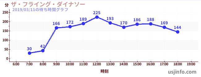 • ザ・フライング・ダイナソー$B$N(B2019年03月11日の待ち時間